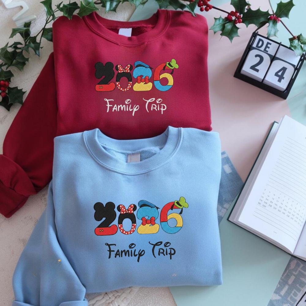 2026 Disney Trip Family Matching Embroidered Sweatshirt Personalised Cruise