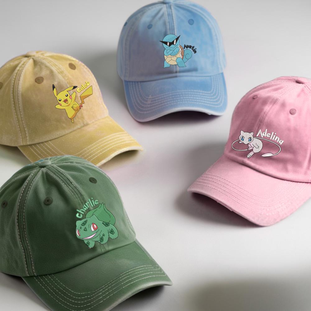 Embroidered Custom PKM Washed Hat Name Baseball Cap Personalized Gift For Anime Fan Pocket Beast