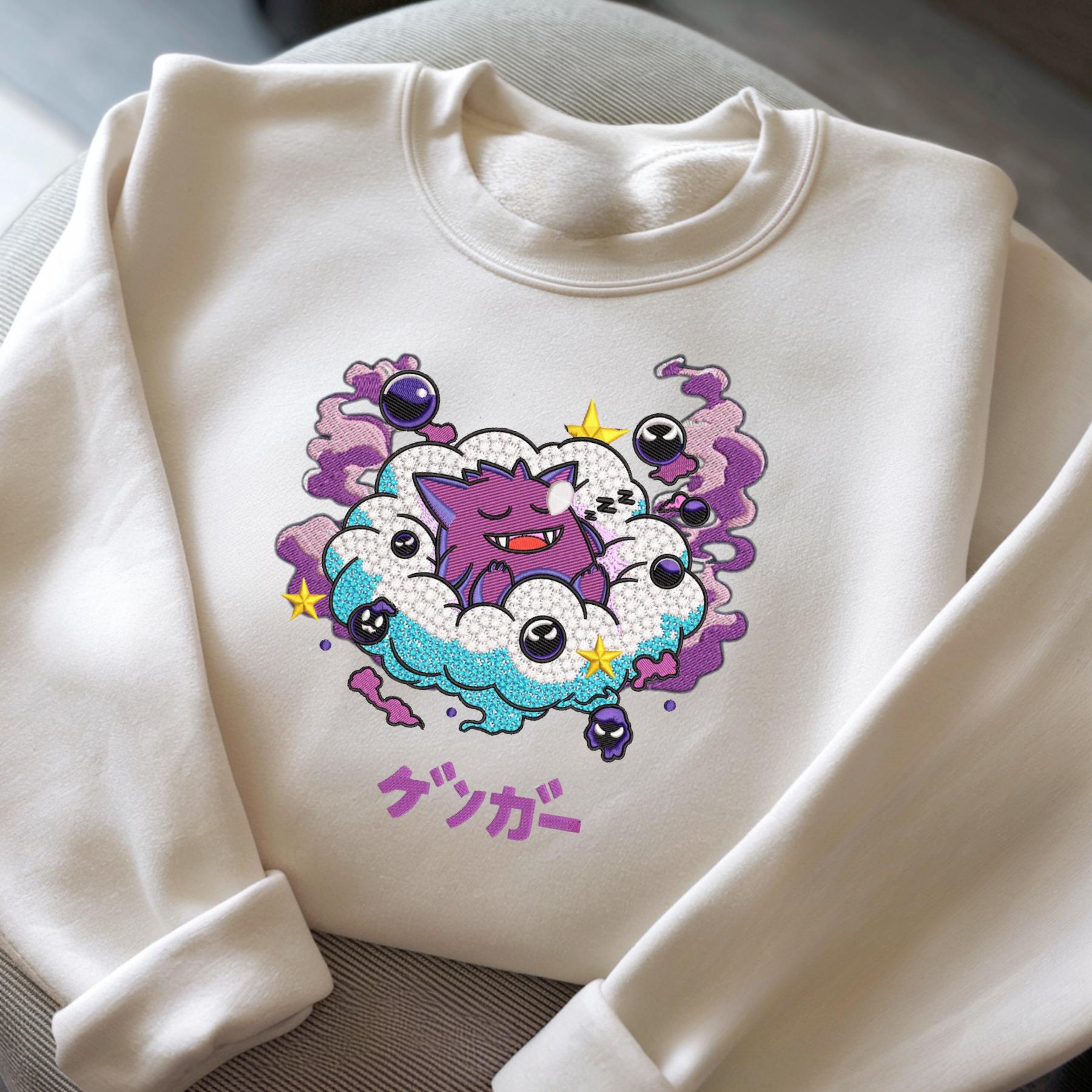 Embroidery Custom Gengar Greninja Sweatshirt On The Cloud Anime Tshirt Pokemon University Shirt Unisex