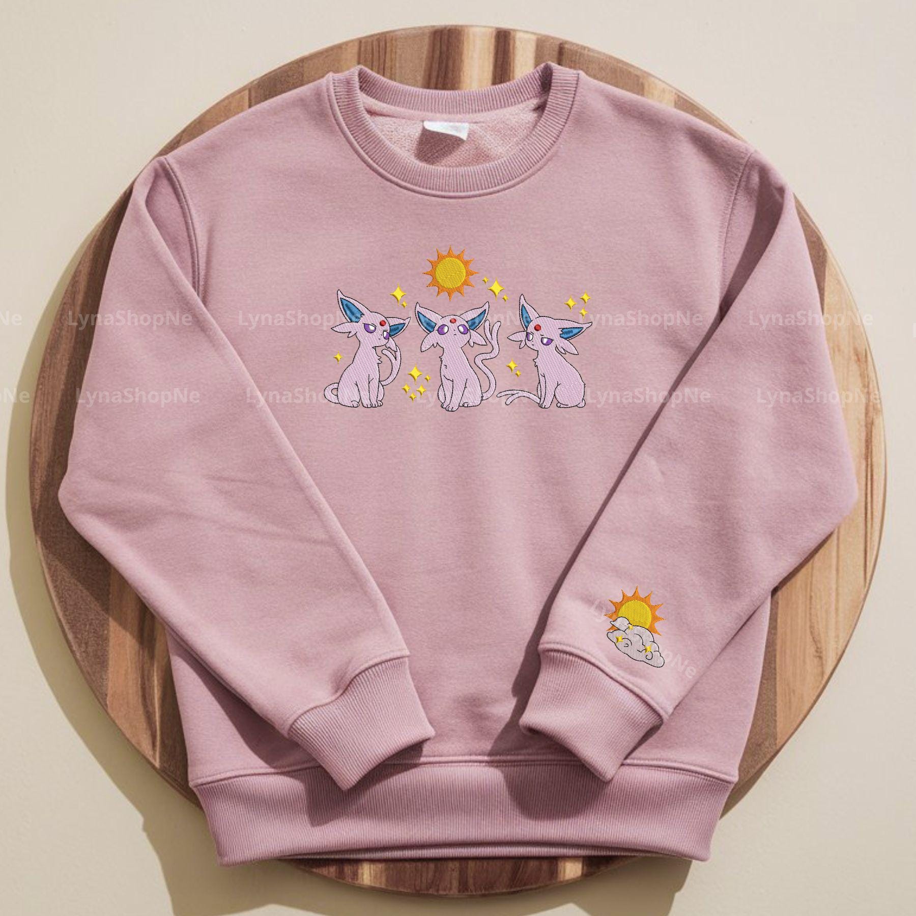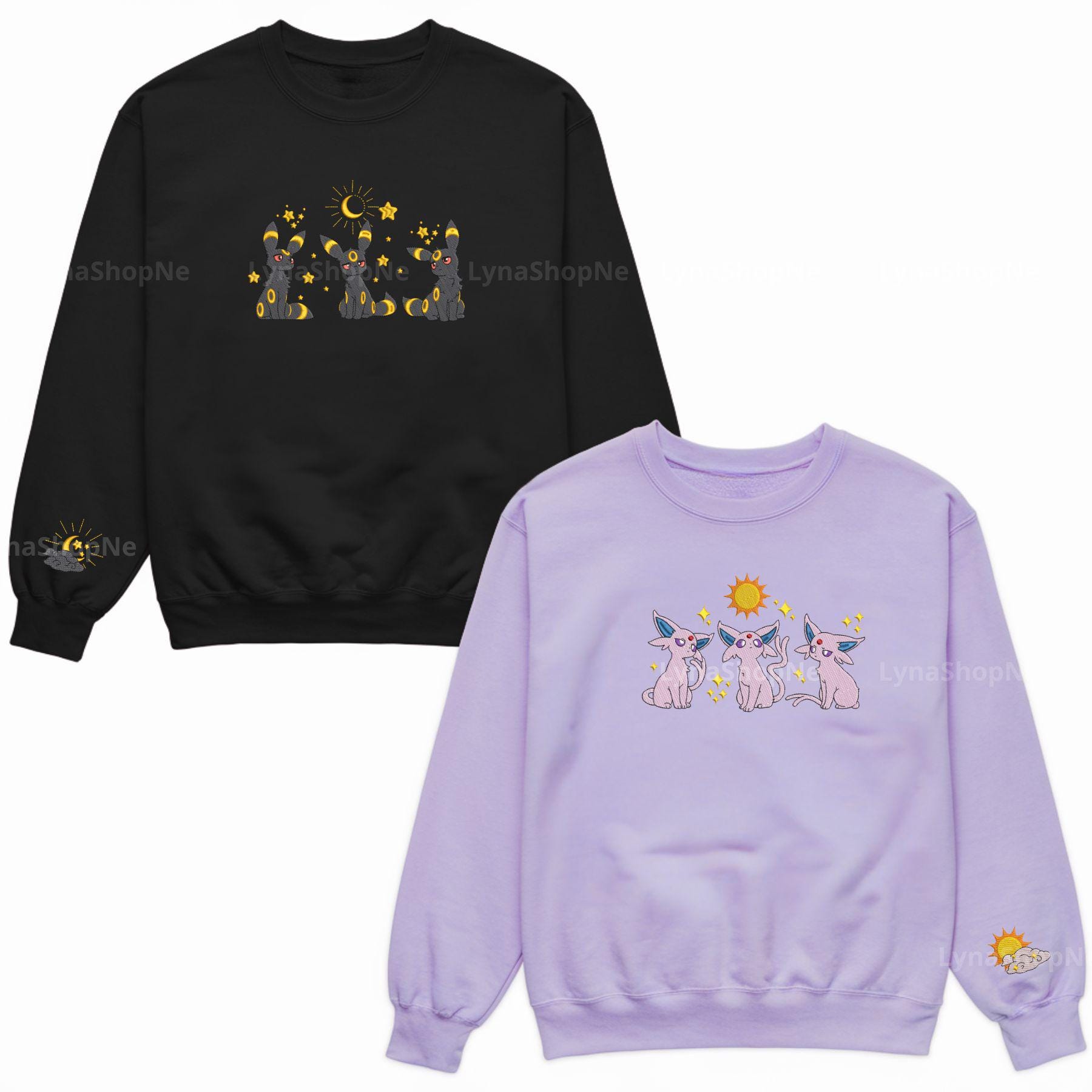 Embroidery Espon And Umbeon Matching Sweatshirt Psychic Sun Crescent Moon Couple Anime Shirt Gift For Her/Him