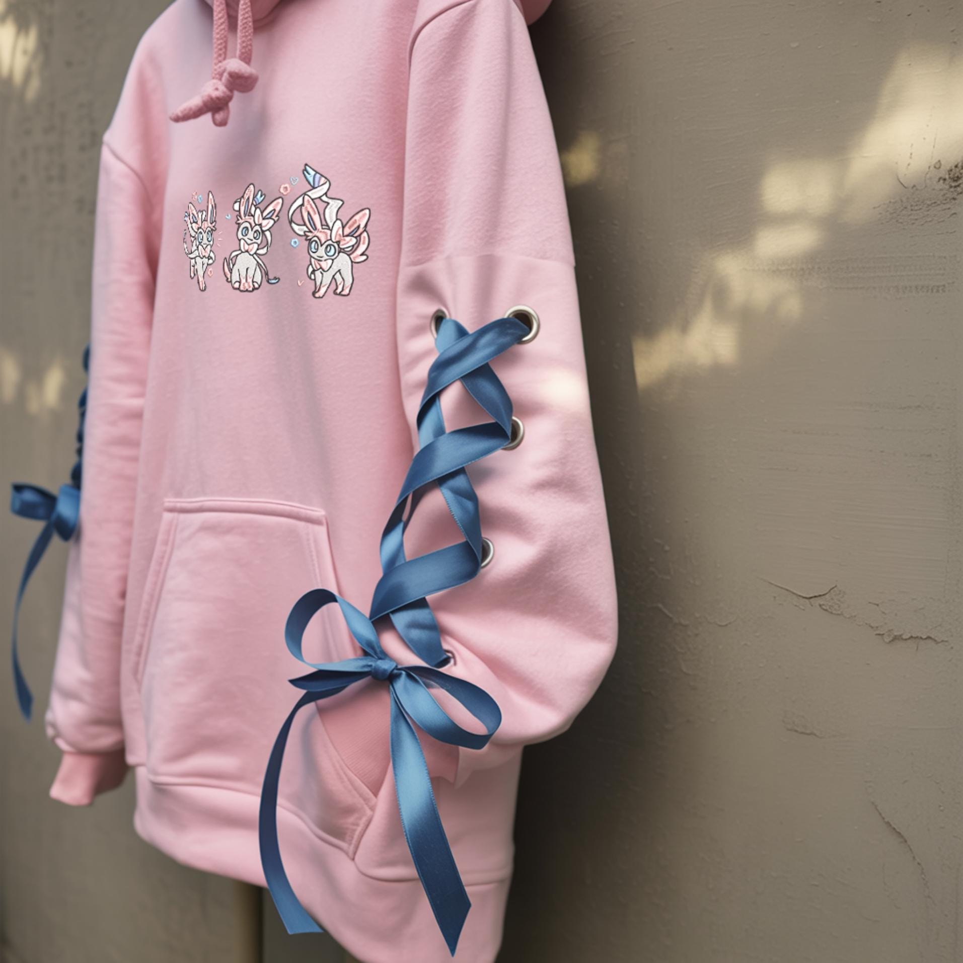 Be the first to review “Embroidery Syveon PKM Ribbon Sweatshirt Eve Evolution Fairy Cute Charm Anime Hoodie Trendy Coquette Bow Gift For Fan”
